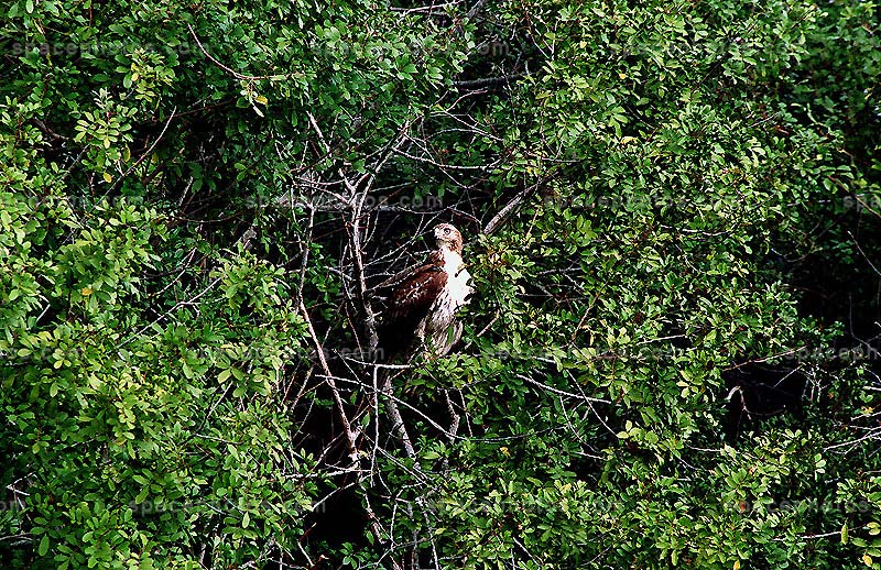(02/23/1999) -- A Rough-legged hawk stares at the landscape from a perch in a tree in the Merritt Island National Wildlife Refuge. This type of hawk is rarely seen in Florida, ranging from northern Alaska through Manitoba and Newfoundland and wintering from California east to Virginia. The 92,000-acre refuge, which shares a boundary with the Kennedy Space Center, is habitat for more than 310 species of birds, 25 mammals, 117 fishes and 65 amphibians and reptiles